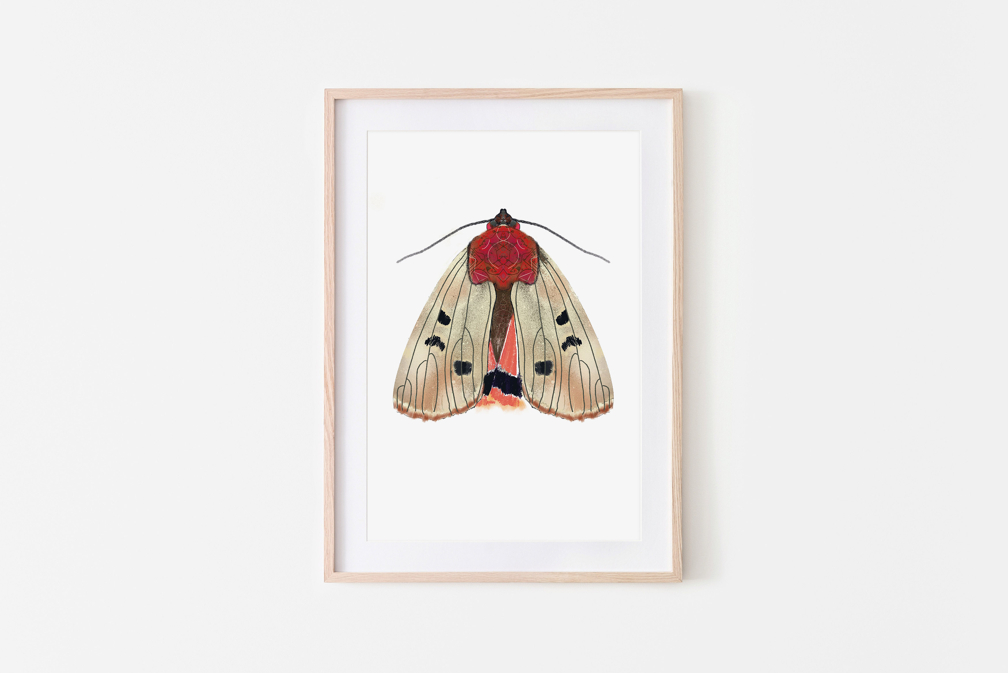 Dit is een kunstprint van een cream mot illustratie uit Angela’s nachtvlinder kunst print serie.