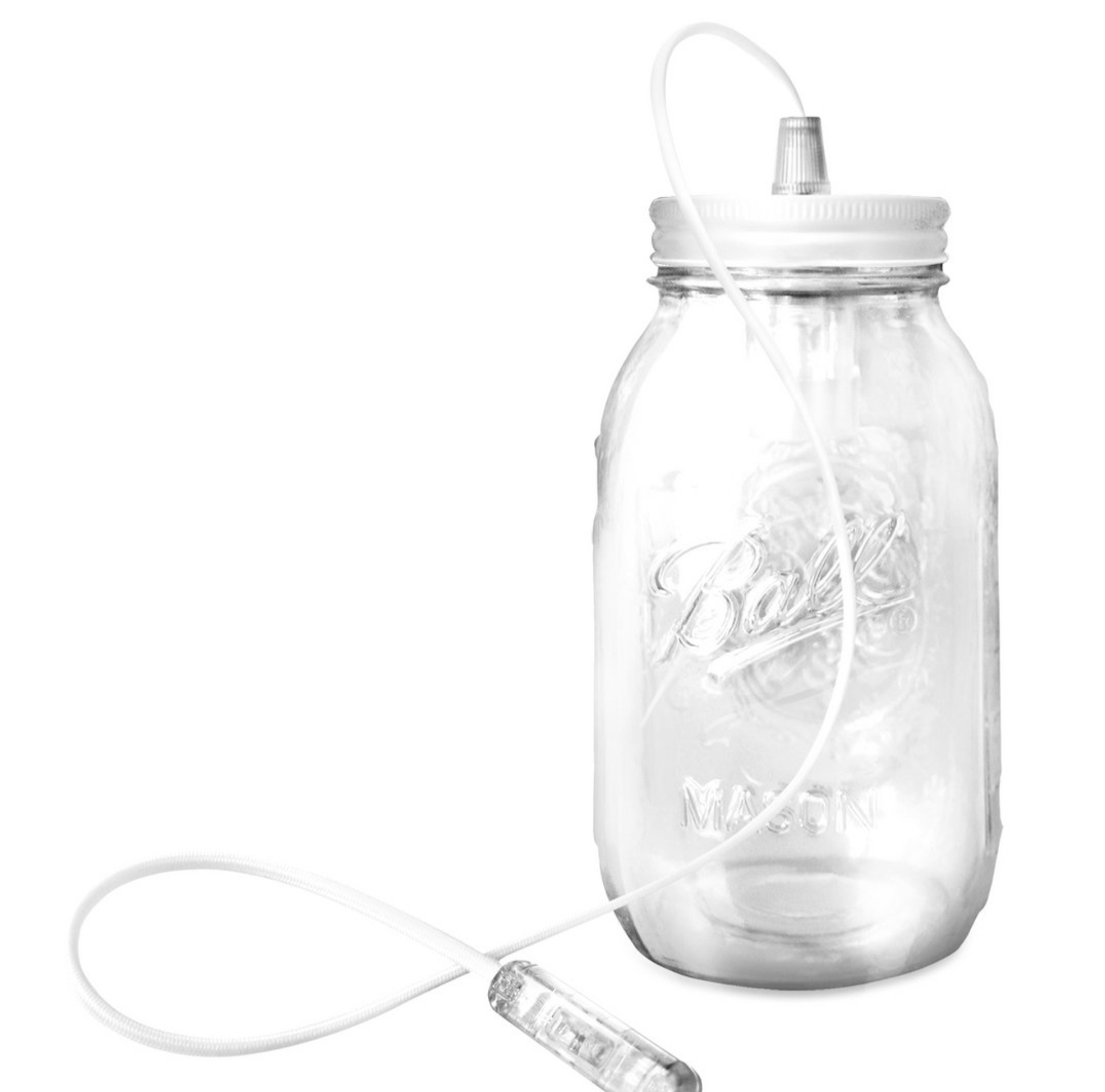 Tafellamp van het beroemde Amerikaanse ‘mason jar’ merk ‘ball’ met wit textieldraad  van het Franse merk FENEL & ARNO