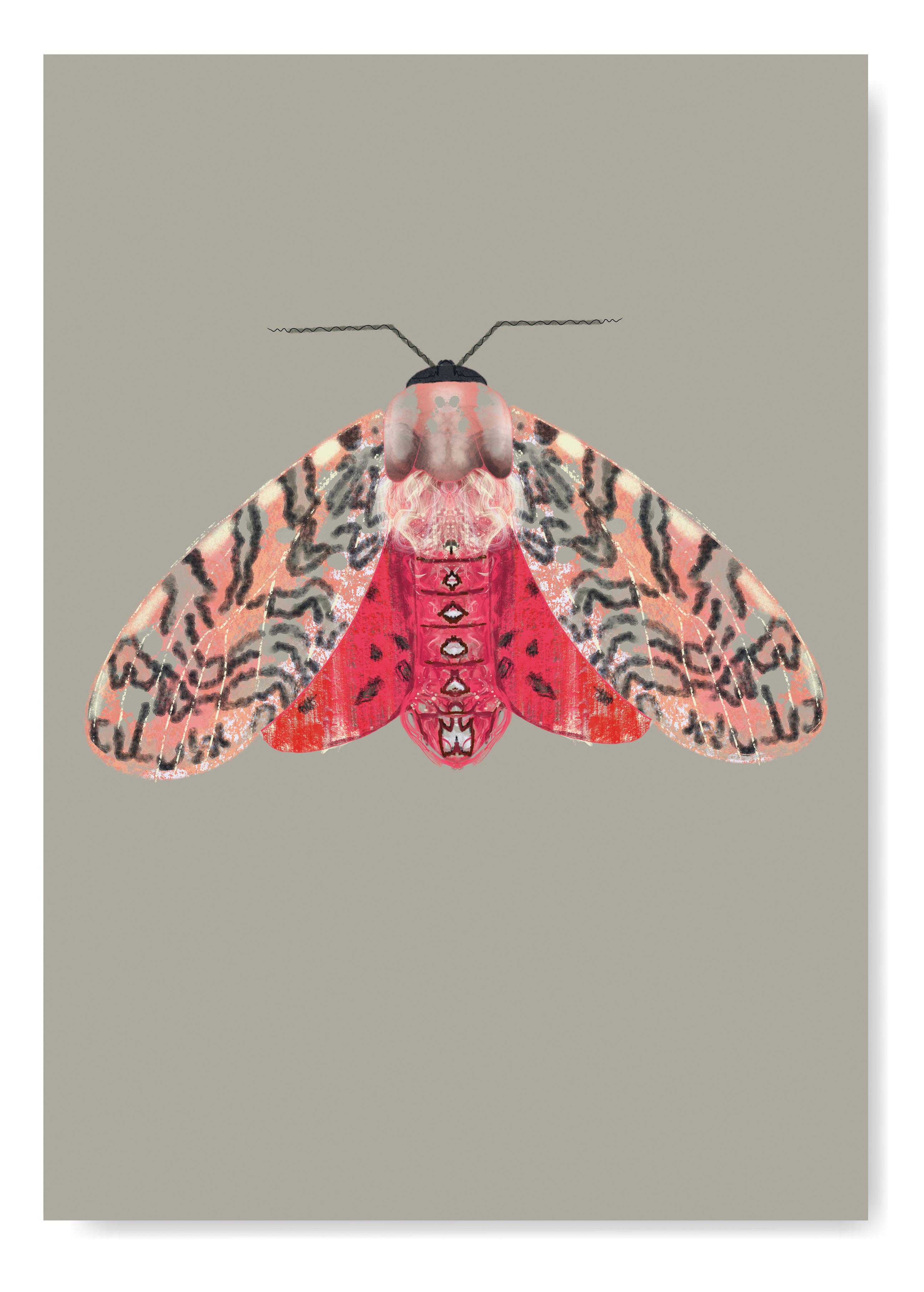 • Motten kunstprint illustratie roze rode mot tekening Angela Peters studio Angelart